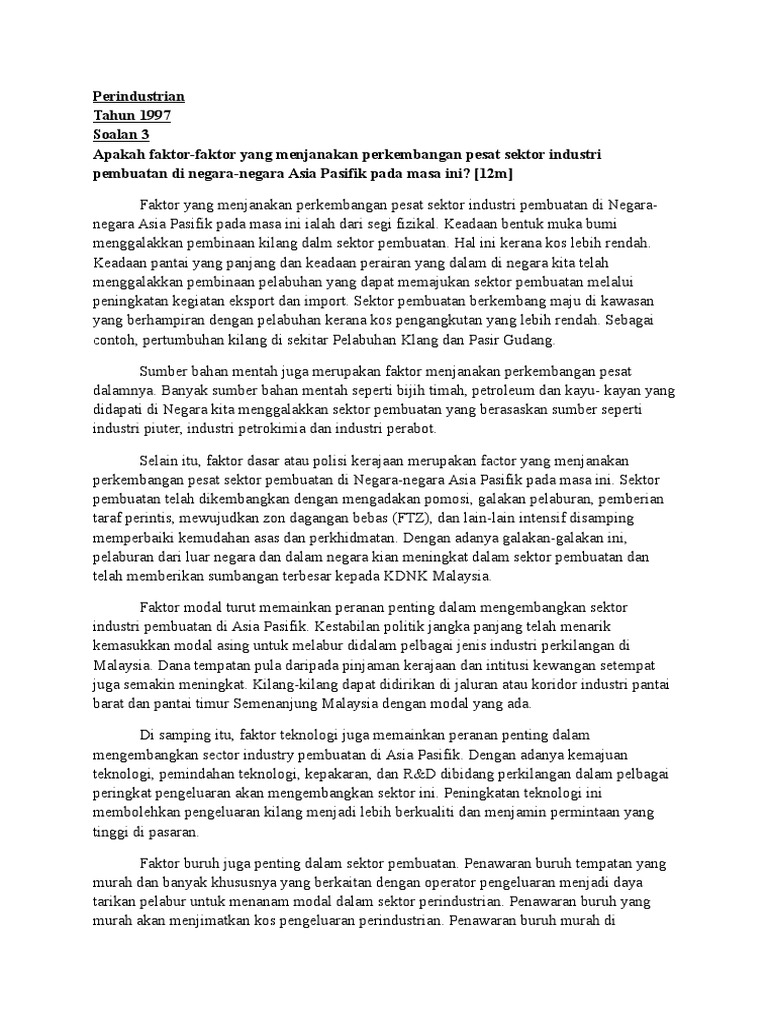 Rakyat Malaysia juga harus menyedari bahawa dalam menghadapi cabaran IR 40 sains dan teknologi adalah asas atau tulang belakang kepada kebangkitan berkenaan. 1 a Takrifkan maksud aglomerasi industri. Ekonomi wilayah di Malaysia.